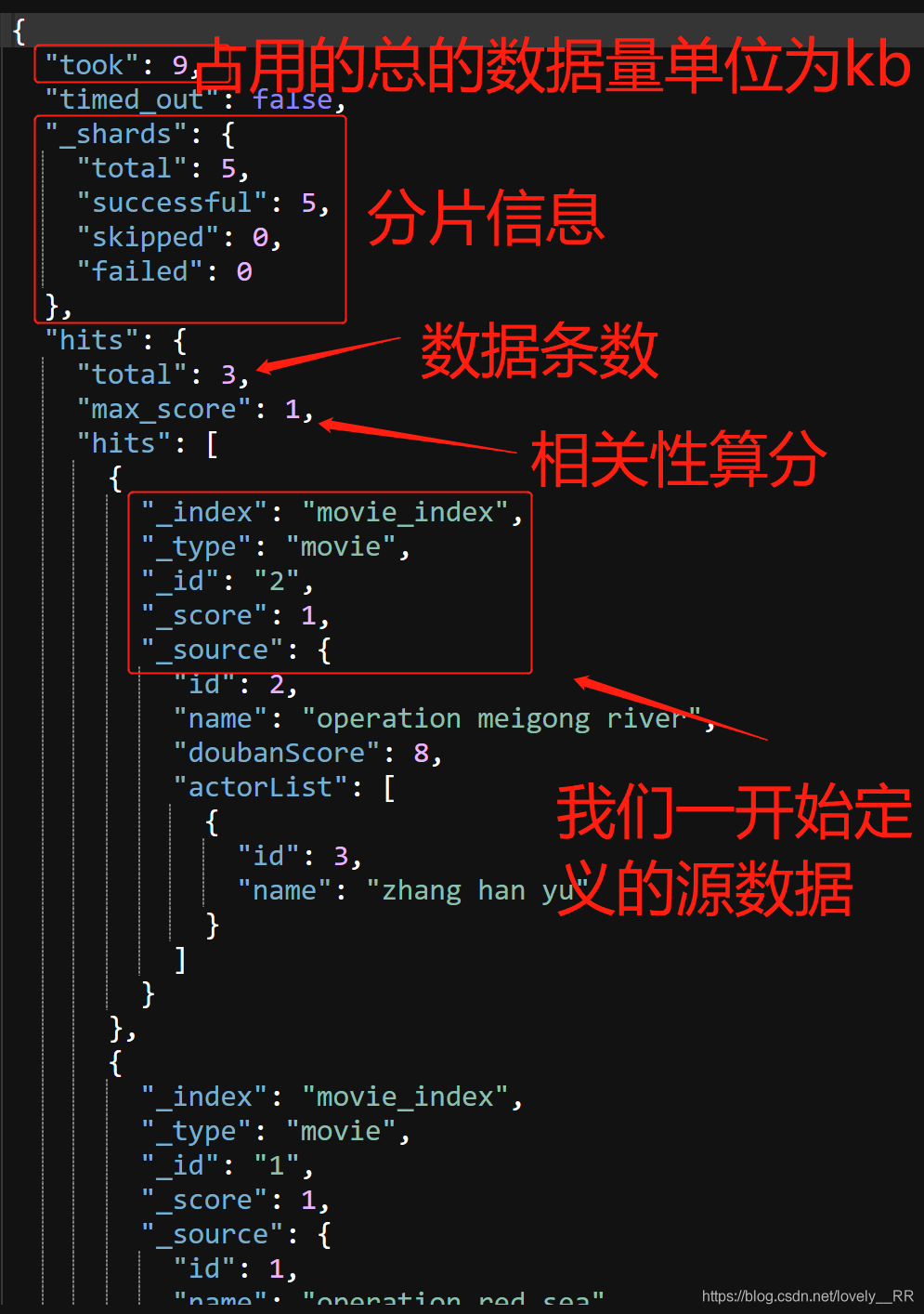 因为我们没有添加任何的 筛选条件,所以我们每条数据的相关性算分都是1,在之后我们的查询过程中我们添加完条件之后我们再来回顾就能发现相关性算分的变化了.