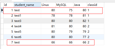 上图举例说明:图中student_name 为 test的同学有两位,不同的是班级
