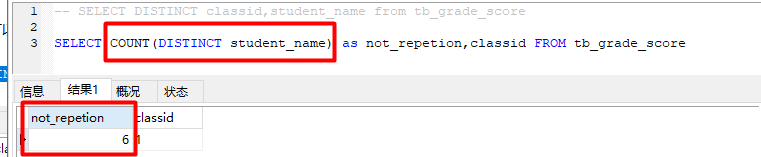 一般用来返回不重复的记录条数,返回不重复的条数(去掉test重复的,就剩下6条)