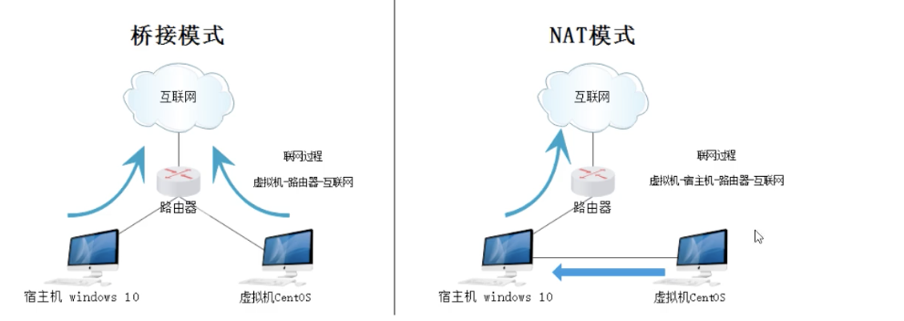 使用桥接模式的虚拟机系统和宿主机的关系,就像是连接在同一个hub上的两台电脑