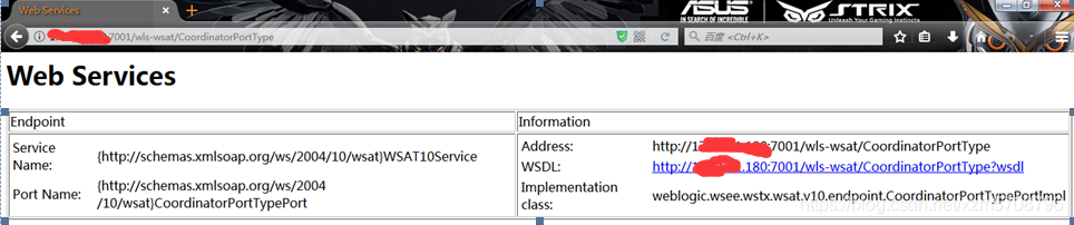打开浏览器,页面输入:应用IP:端口/wls-wsat/CoordinatorPortType,出现如下情况证明存在漏洞。