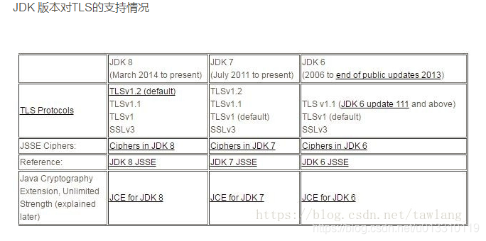 下面是JDK对TLS版本的支持情况: