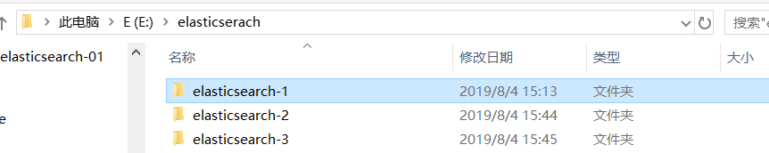 三、将 elasticsearch-5.6.8.zip 解压到一个没有中文和特殊符号的文件夹,然后拷贝两份,为了方便部署,我们进行如下命名: