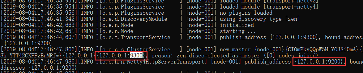 五、逐一启动每一台 ElasticSearch 服务,查看各自的端口号