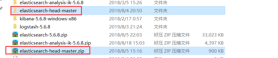 elasticsearch-5.6.8.zip 和 elasticsearch-head-master.zip