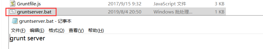 在安装的目录下右键新建一个 .txt 文件,写上 grunt server 这条命令,保存,并且更改后缀名为 .bat