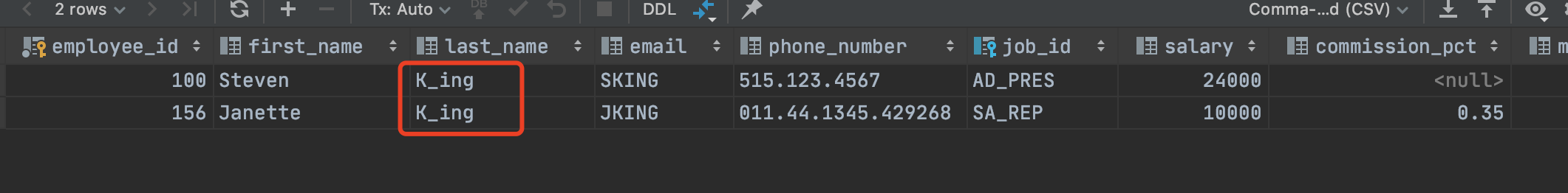 select * from employees where last_name like '_$_%' escape '$';
