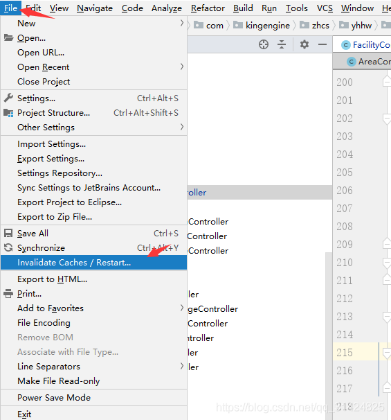 打开IDEA菜单File->Invalidate Caches / Restart中,选择Invalidate and Restart,之后会重启Idea