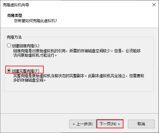 完整克隆是原始虚拟机当前状态的完整副本。此副本虚拟机完全独立,但需要较多的储存磁盘空间。