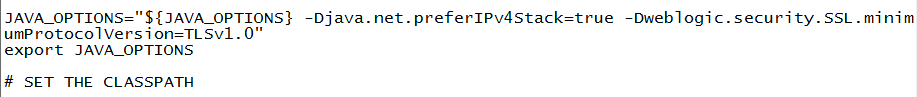 -Djava.net.preferIPv4Stack=true -Dweblogic.security.SSL.minimumProtocolVersion=TLSv1.0