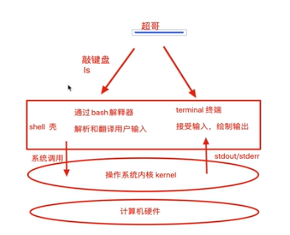 从登录linux,输入账号密码到进入linux交互式洁面,所有的操作,都交给shell解释并执行。