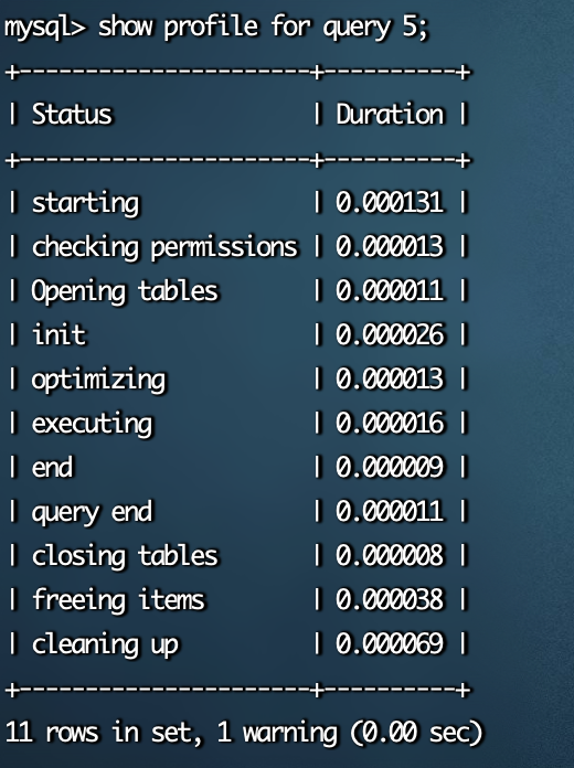 1.确认profiling是否开启,开启的话,mysql会收集sql执行时所使用的资源情况。