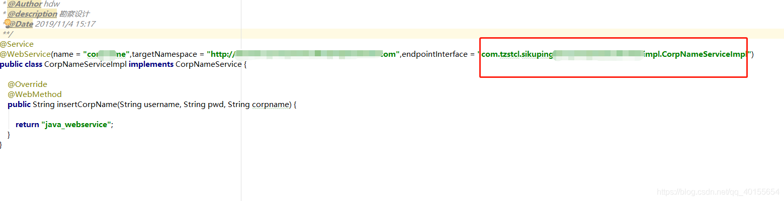 springboot整合WebService,报了这个错。经过多次尝试,发现@Webservice的属性赋值写错了。