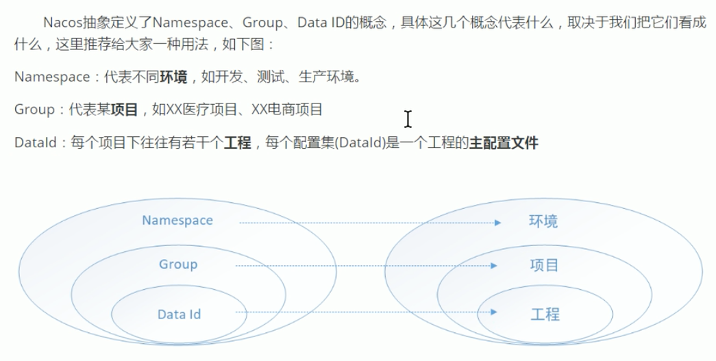 对于nacos配置管理,通过namespace、group、dataId能够定位到一个配置集。