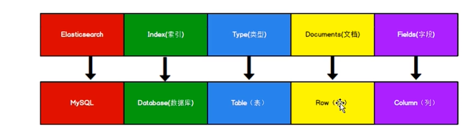 ES里的index索引就是一个数据库。而TYPE相当于表,docuents则相当于表的行,但是后来type已经被删除。