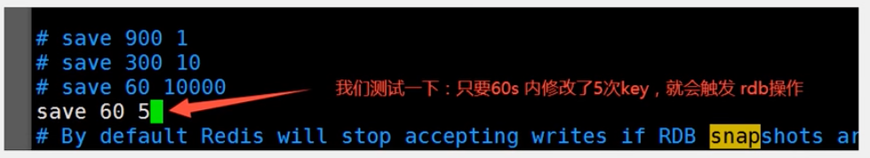 修改配置文件,60秒有5次改动,就会进行一次快照