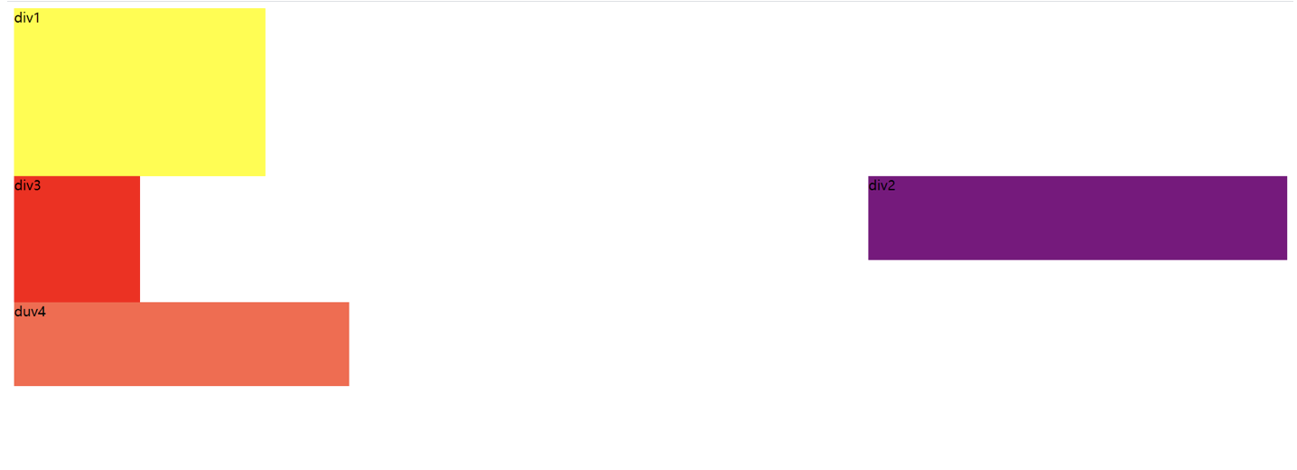 此时我们可以看到,div2靠右排列过后。我们就可以清楚的看到div1,div3,div4重新组成的标准流。
