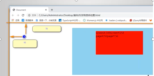概述:他们两者也是事件对象属性,主要作用也是获取鼠标位置,是网页主题部分左上角为零零点。