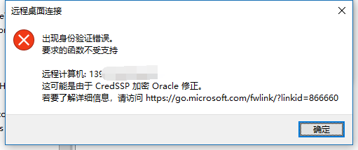 远程登录-出现身份验证错误[可能是由于CredSSP加密Oracle修正]
