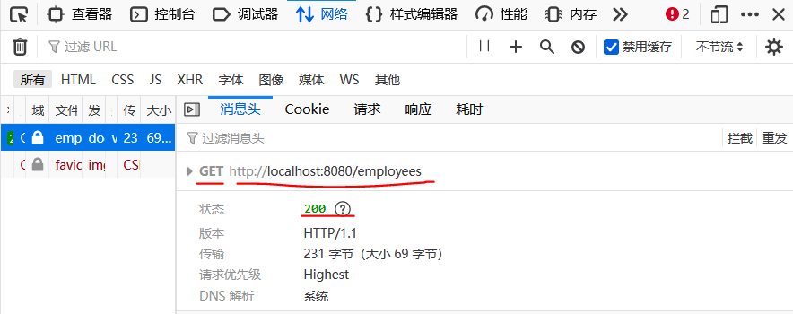 (1)请求路径:确认资源 —— /employees