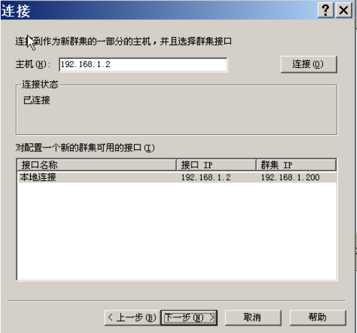 结果表明,虚拟集群IP地址”192.168.1.200”可以正常在集群节点1和2之间自动切换,双机集群工作正常。