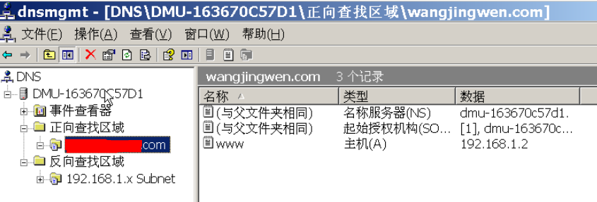 安装DNS服务,启动DNS管理器: