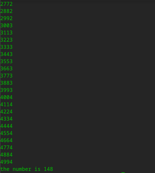 所有数比较完成后,输出回文数的总个数: