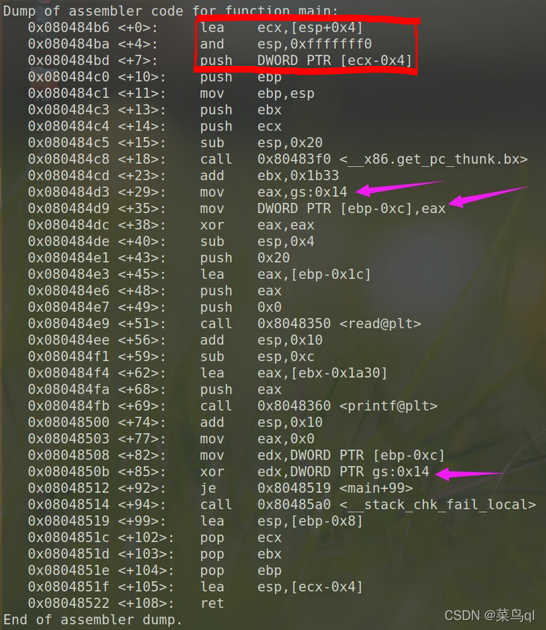 -> s与ebp相距:0xffffcf78-0xffffcf0c = 6c