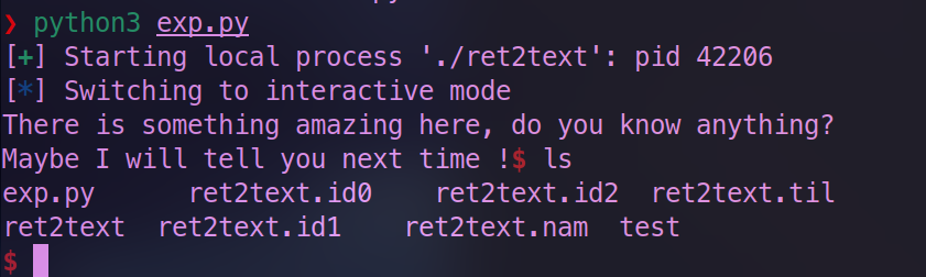 sh.interactive()- 进入交互模式,将标准输入输出重定向到目标进程