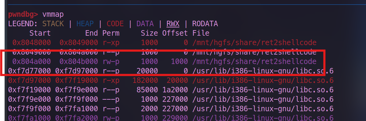 0x0804a000 0x0804b000 0x00001000 rwx /mnt/hgfs/Hack/CTF-Learn/pwn/stack/example/ret2shellcode/ret2shellcode