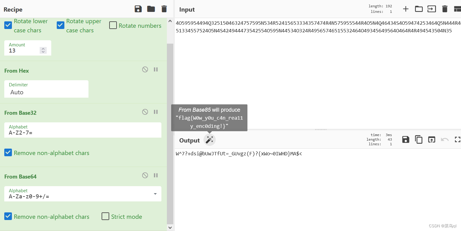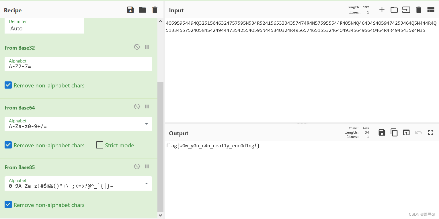 密码由0-9A-Za-z!#$%&()*+\-;<=>?@^_`{|}~组成,根据提示用base85