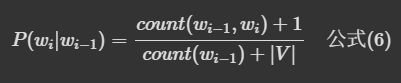 由于数据稀疏问题,则会出现概率值为 0 的情况,为了避免 0 值的出现,会使用一种平滑的策略——分子和分母都加入一个非 0 正数,例如可以把公式(4)改为: