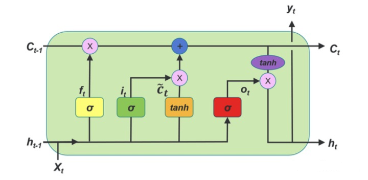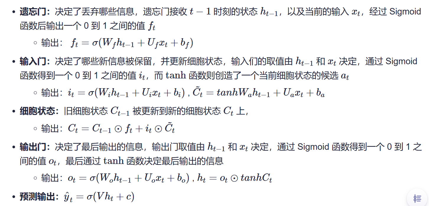 如上图所示,为 LSTM 的 RNN 门控结构(LSTM 的 timestep),LSTM 前向传播过程包括: