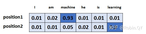 假设词汇表维度是 6,那么输出最大概率词汇的过程如下: