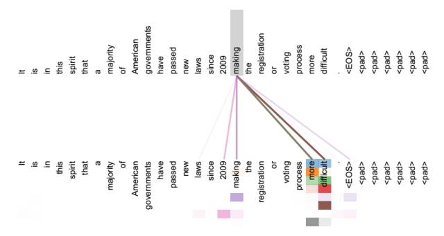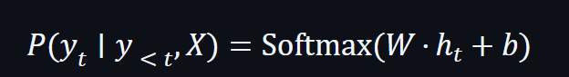 - 之后的softmax层将这些分数转换为在目标词汇表上的概率分布。