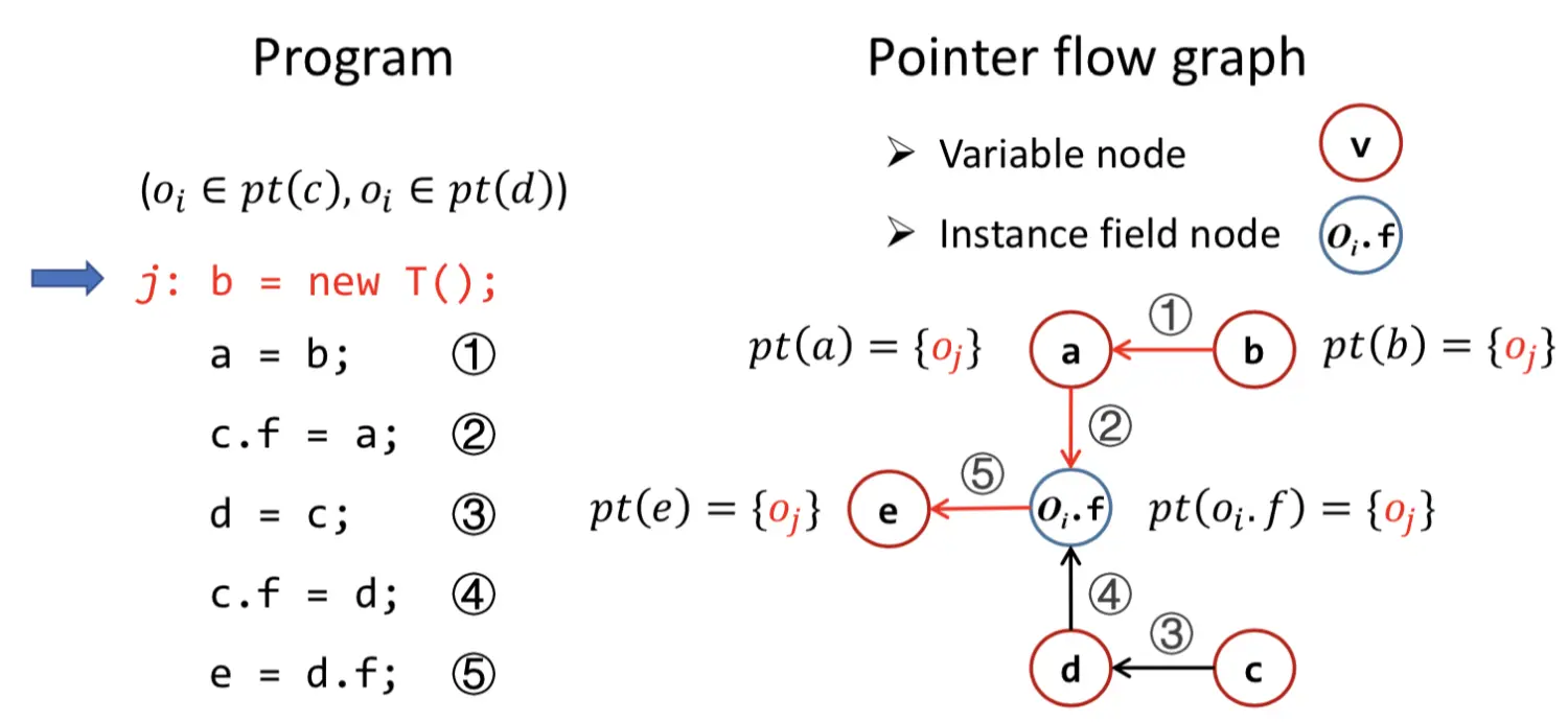 new T()对应的对象oi加入到x指向的指针集。 - Assign:将y指向的指针集加入到x指向的指针集。