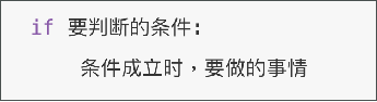 - 归属于if语句的代码块,需在前方填充4个空格缩进