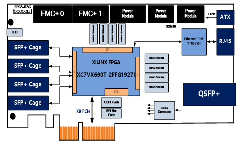 1.板载FPGA实时处理器:JFM7VX690T80;