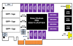 该板卡采用Xilinx的高性能Kintex UltraScale系列FPGA XCKU115作为主处理器,板载4组独立的64位DDR4 SDRAM超大容量数据缓存,最大缓存带宽可以到72GByte/s,每组DDR4支持16GByte容量,整板支持64GByte超大容量数据缓存。