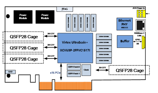 【PCIE736-0】基于 PCIE X16 总线架构的 4 路 QSFP28 100G 光纤通道处理平台(基于 XCVU3P FPGA)