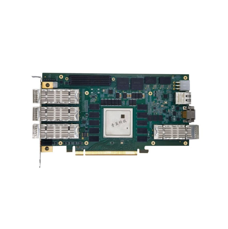 产品概述PCIE736-0 是一款基于 PCIE 总线架构的 4 路 QSFP28 100G 光纤通道适配器,该板卡具有 1 个 PCIe Gen3x16 主机接口、一共 4个 QSFP28 100G 光纤接口,可以实现 4 路 QSFP28 100G 光纤的数据实时采集、实时缓存与 PCIE 高速传输。该板卡采用 Xilinx 的高性能Virtex UltraScale+系列 FPGA XCVU3P 作为主处理器,板载 2 组独立的 80 位 DDR4 SDRAM 超大容量数据缓存。板卡具有 1 个 RJ45千兆以太网口以及若干 IO 控制信号。该板卡为标准全高 PCIE 尺寸,可广泛应用于基于服务器的光纤通道数据采集、数据传输等场景。