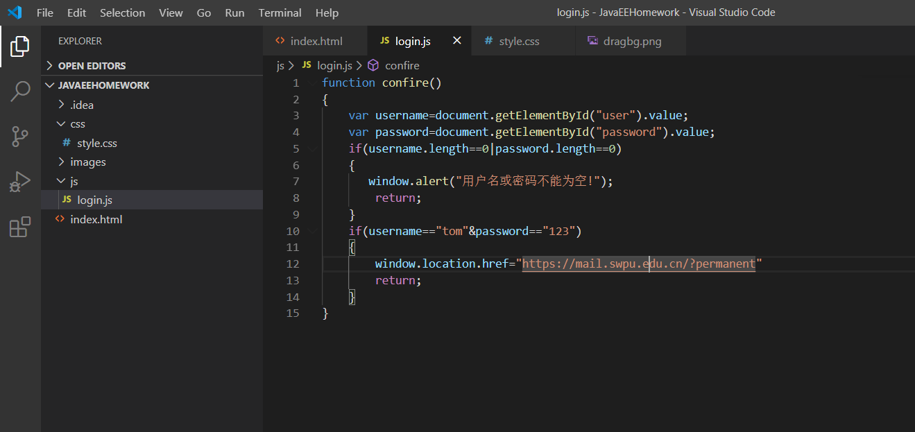 3、编写js文件静态验证用户名密码