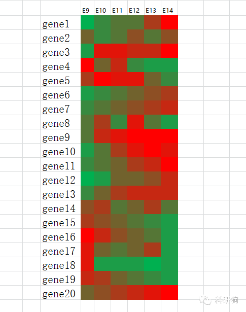 用excel绘制基因芯片热力图