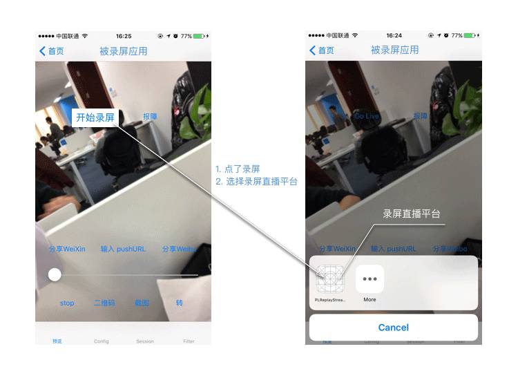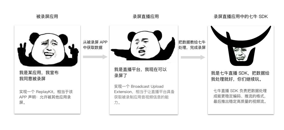 熊猫 TV 作为国内首家支持 ReplayKit Live 的直播平台,开创了直播行业的先河。熊猫 TV iOS 上的录屏方案采用七牛提供的 ReplayKit 方案实现。