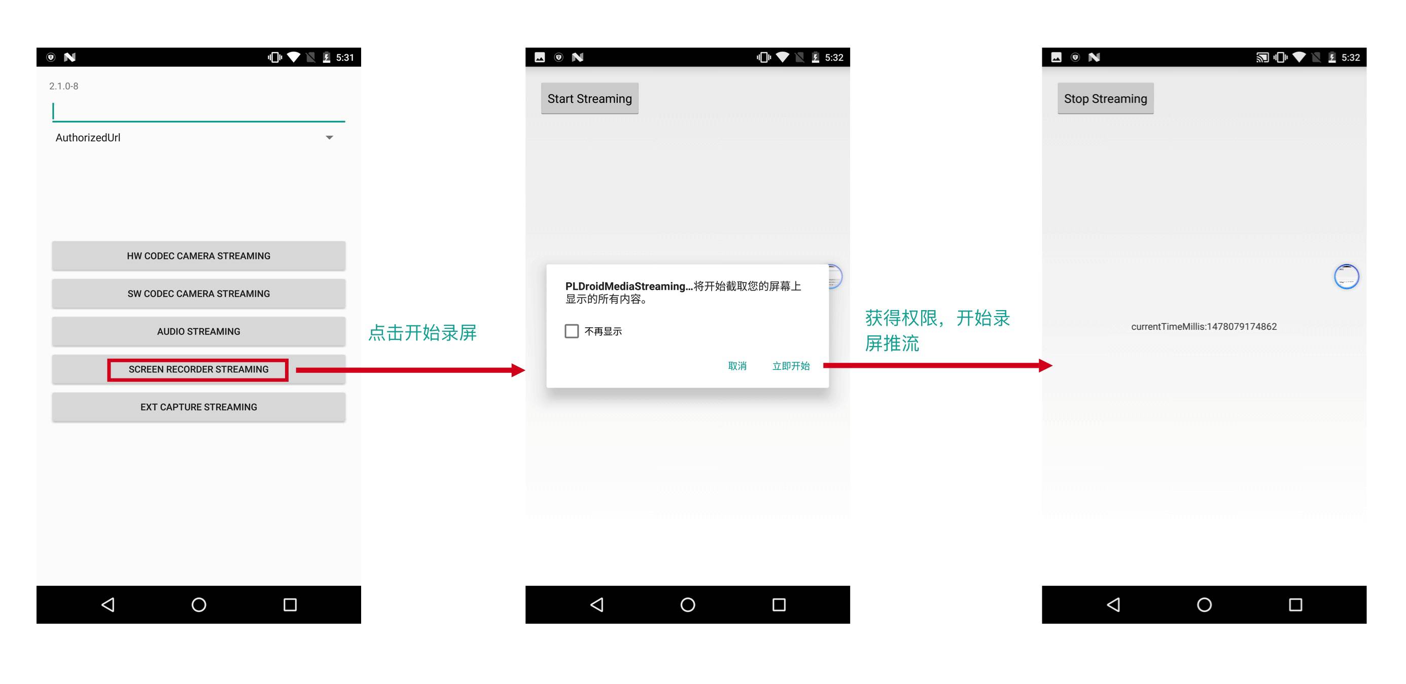 在 Android 5.0 以后,Google 开放了截屏的接口,可以通过「虚拟屏幕」来实现录屏。该方式是目前 PLDroidMediaStreaming 采用的方式。