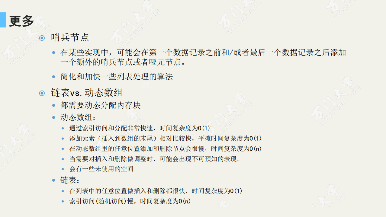1 #先定义一个node的类 2 calss Node(): 3 def _init_(self,value=None,next=None): 4 self._value=value 5 self._next=next 6 7 def getValue(self): 8 return self._value 9 def getNext(self): 10 return self._next 11 def setValue(self,new_value): 12 self._value=new_value 13 def setNext(self,new_next): 14 self._next=new_next 15 16 17 18 #实现Linked List及其各类操作方法 19 class LinkedList(): 20 def _init_(self): 21 self._head=Node() 22 self._tail=None 23 self._length=0 24 25 #检测是否为空 26 def isEmpty(self): 27 return self._head==None 28 #add在链表前端添加元素:O(1) 29 def add(self,value): 30 newnode=Node(value,None) 31 newnode.setNext(self._head) 32 self._head=newnode 33 #append在链表尾部添加元素:O(n) 34 def append(self,value): 35 newnode=Node(value) 36 if self.isEmpty(): 37 self._head=newnode 38 else: 39 current=self._head 40 while current.getNext()!=Node: 41 current=current.getNext() 42 current.setNext(newnode) 43 44 45 #search检索元素是否在链表中 46 def search(self,value): 47 current=self._head 48 foundvalue=False 49 while current != None and not foundvalue: 50 if current.getValue()==value: 51 foundValue=True 52 else: 53 current=current.getNext() 54 return foundvalue 55 56 #index索引元素在链表中的位置 57 def index(self,value): 58 current=self._head 59 count=0 60 found=None 61 while current != None and not found: 62 if current.getValue()==value: 63 found=True 64 else: 65 current=current.getNext() 66 if found: 67 return count 68 else: 69 print("error") 70 71 72 73 #remove删除链表中的某项元素 74 def remove(self,value): 75 current=self._head 76 pre=None 77 while current!=None: 78 if current.getValue()==value: 79 if not pre: 80 self._head=current.getNext() 81 else: 82 pre.setNext(current.getNext()) 83 break 84 else: 85 pre=current 86 current=current.getNext() 87 88 #insert链表中插入元素 89 def insert(self,pos,value): 90 if pos<=1: 91 self.add(value) 92 elif pos>self.size(): 93 self.append(value) 94 else: 95 temp=Node(value) 96 count=1 97 pre=None 98 current=self._head 99 while count<pos: 100 count+=1 101 pre=current 102 current=current.getNext() 103 pre.setNext(temp) 104 temp.setNext(current) 105 106