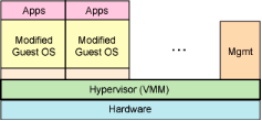 它与完全虚拟化有一些类似,它也利用Hypervisor来实现对底层硬件的共享访问,但是由于在Hypervisor 上面运行的Guest OS已经集成与半虚拟化有关的代码,使得Guest OS能够非常好地配合Hyperivosr来实现虚拟化。通过这种方法将无需重新编译或捕获特权指令,使其性能非常接近物理机,其最经典的产品就是Xen,而且因为微软的Hyper-V所采用技术和Xen类似,所以也可以把Hyper-V归属于半虚拟化。