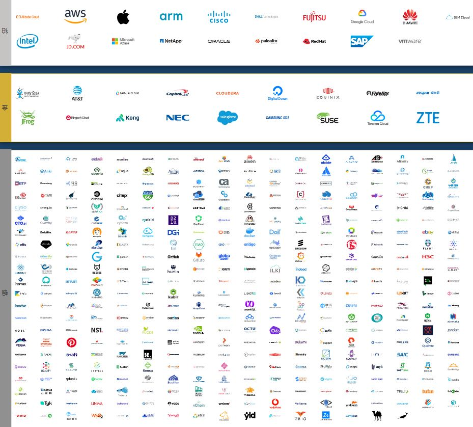 2015年,由Google、Redhat以及微软等大型云计算厂商以及一些开源公司共同牵头成立了CNCF云原生基金会。CNCF成立之初,就有22个创始会员,而且K8s也成为了CNCF托管的第一个开源项目。