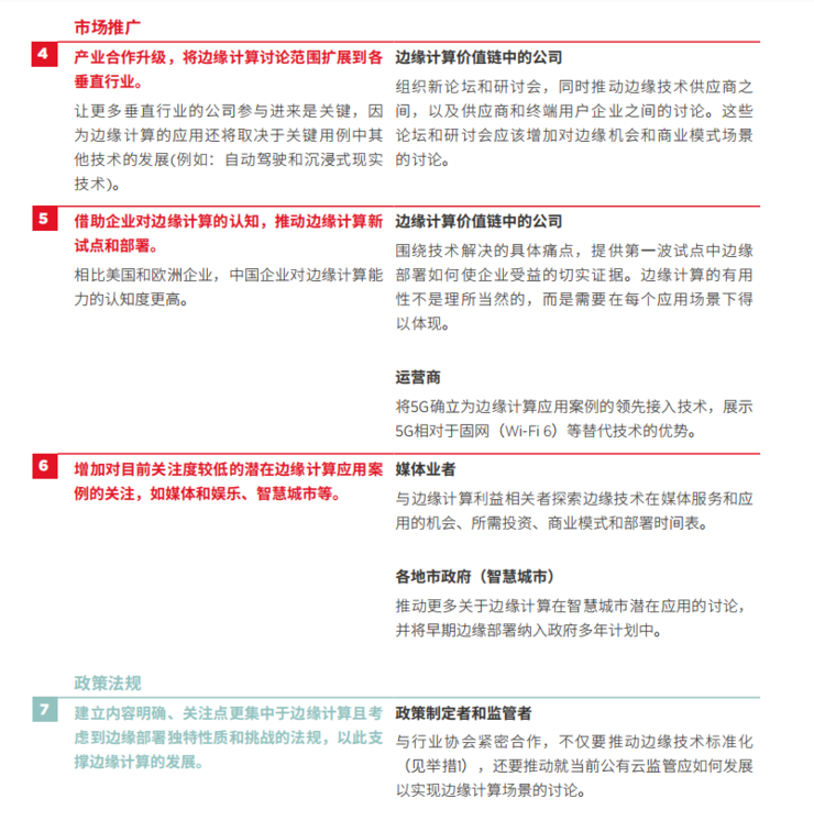 如果这些措施付诸实施,将推动未来 5 年中国边缘技术的发展和应用。其中许多措施涉及整个边缘计算生态,而有些则针对特定种类的公司。