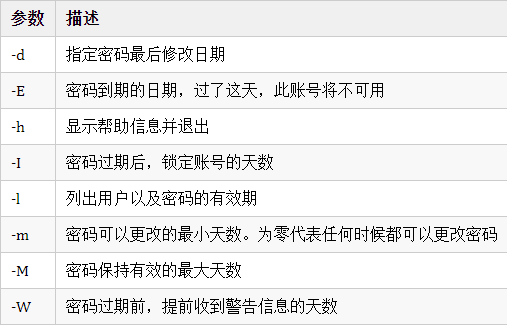 chage命令用于密码实效管理,用来修改账号和密码的有效期。